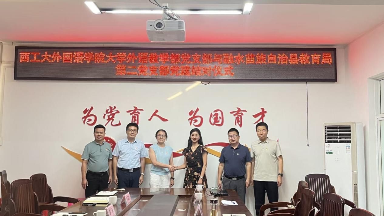党委构建“党支部结对共建+专业师生队伍送教”工作机制,大学外语教学部党支部与融水苗族自治县教育局第二党支部举行了结对联动仪式。王高祖强调,以结对帮扶为纽带,不仅要把先进的外语教学理念、教学方法送到基层课堂,助力提升当地教育教学质量,更要立足教育帮扶实际挖掘党建与业务融合的切入点,把党员先锋模范作用体现在备课指导、课堂示范、教师培训的每一个环节,实现“党建强”与“教育兴”同频共振、互促共进。