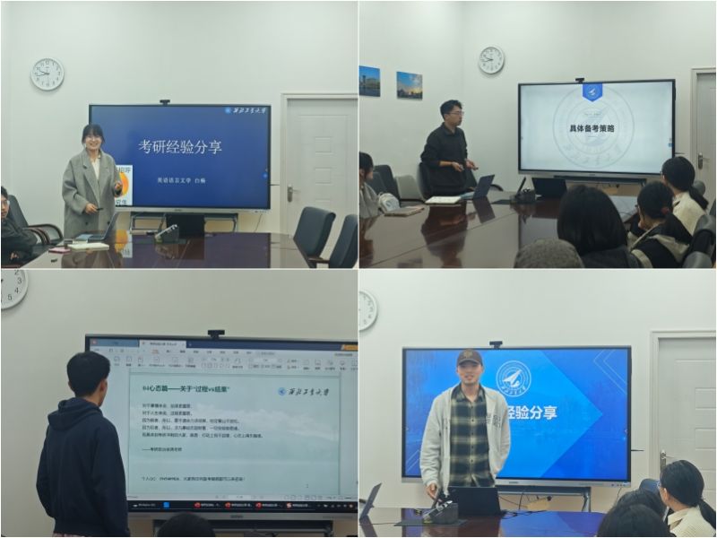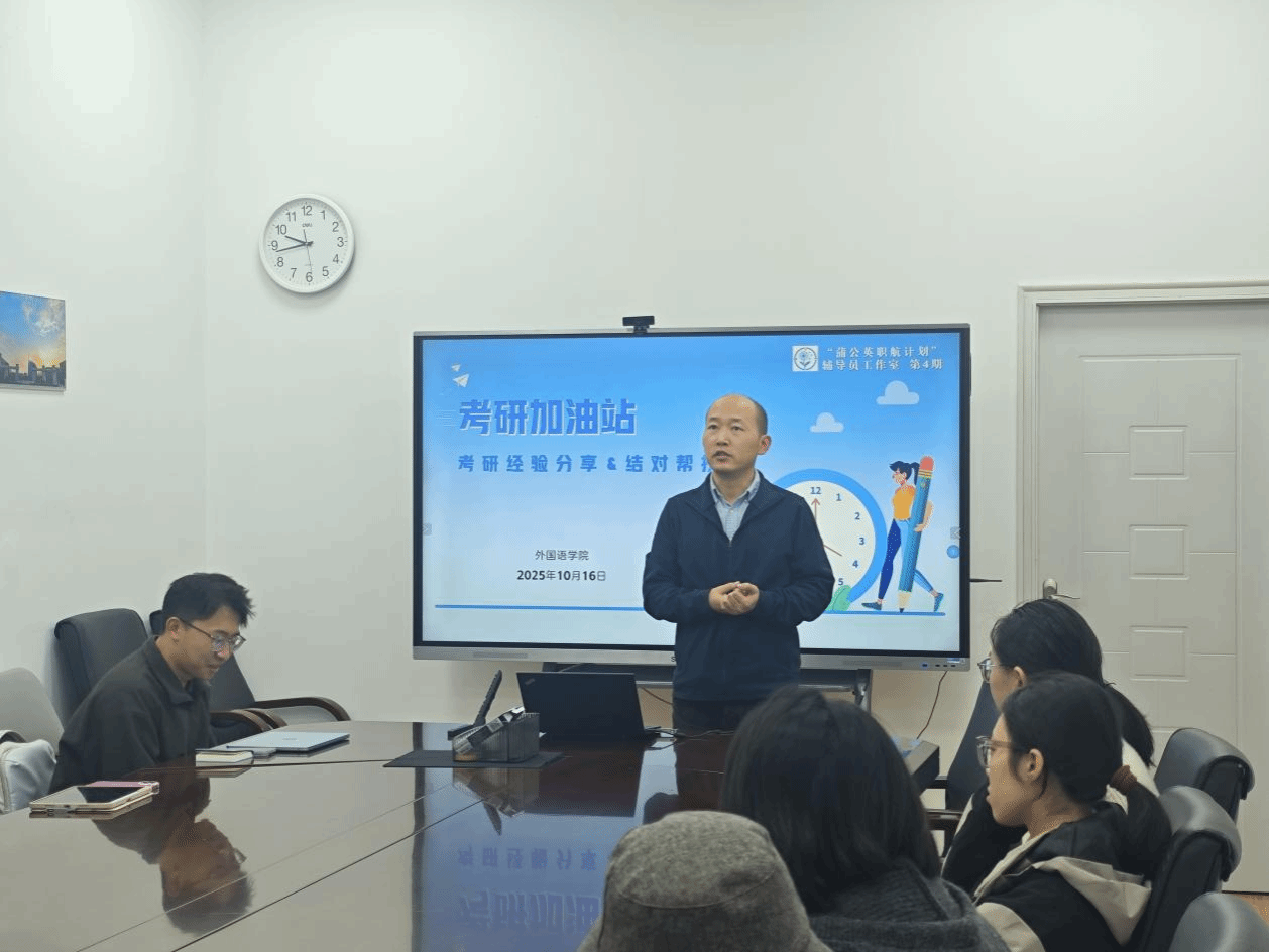 “语翼知行中心”在219会议室开展“考研加油站”主题活动。辅导员赵青邀请四位研究生新生分享升学备考经验,并启动结对帮扶机制,为有升学意向的大四本科生答疑解惑、精准护航。