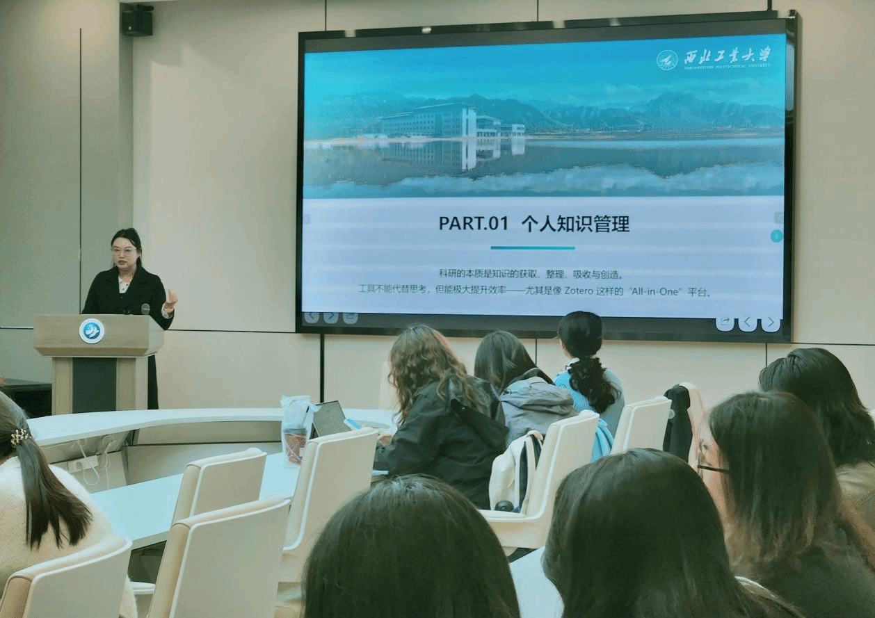 2024级硕士研究生王静娴则聚焦文献管理痛点,带来Zotero工具的实操教学。她通过现场演示,完整呈现文献收集、分类标签设置、阅读笔记批注的操作流程,重点讲解如何利用软件插件实现论文引文自动插入与格式同步调整,帮助同学们掌握高效文献管理方法,减少av解说时间内耗。